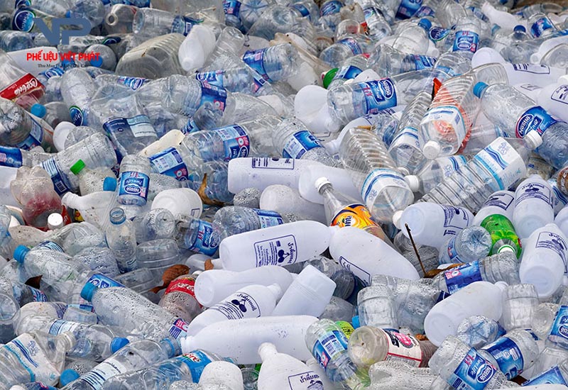 Nhựa PET: Các loại chai nước khoáng, nước giải khát số lượng lớn từ các đơn vị kinh doanh dịch vụ.